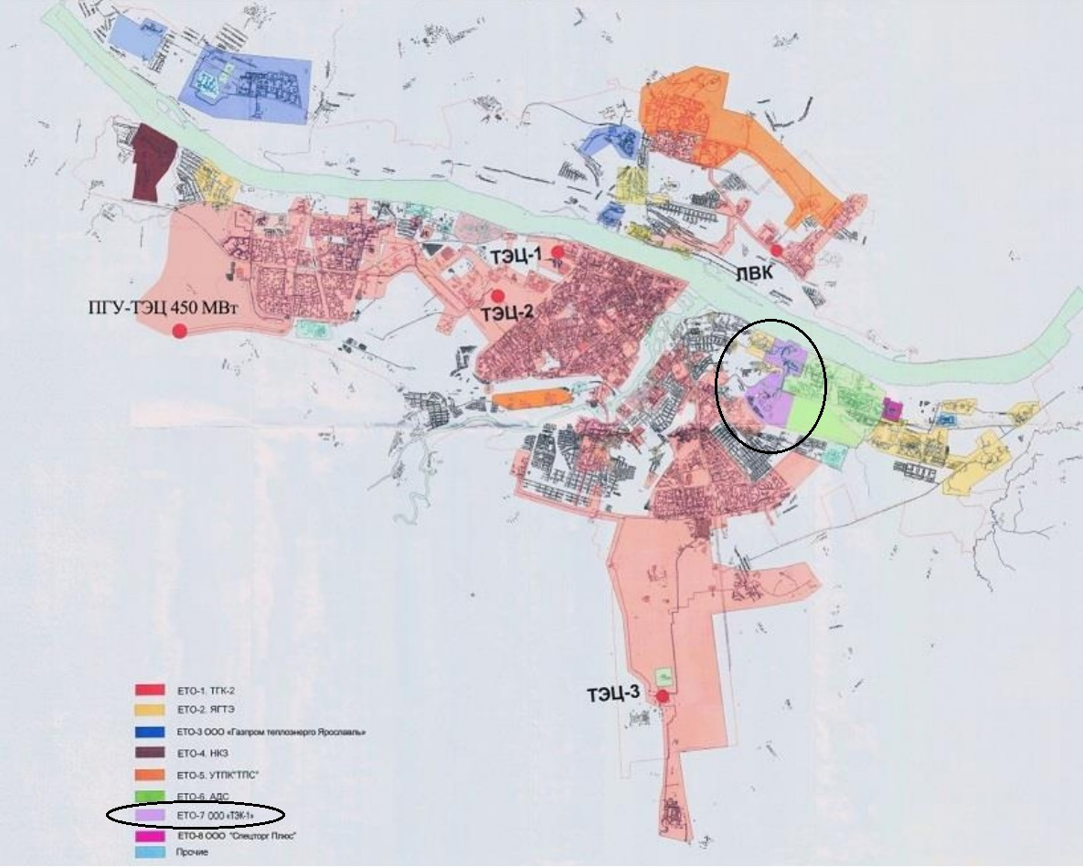 Зона действия ЕТО-7 обозначена на Схеме теплоснабжения города Ярославля